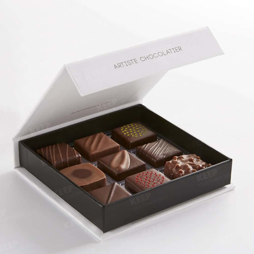 At Keep Custom Boxes, we make chocolate packaging that looks great and keeps the chocolate safe. Our packaging makes sure that every bite starts with a beautiful first impression. It includes dividers and inserts that keep chocolates safe and decorative finishes that make them look so good that you can't resist them.