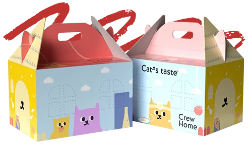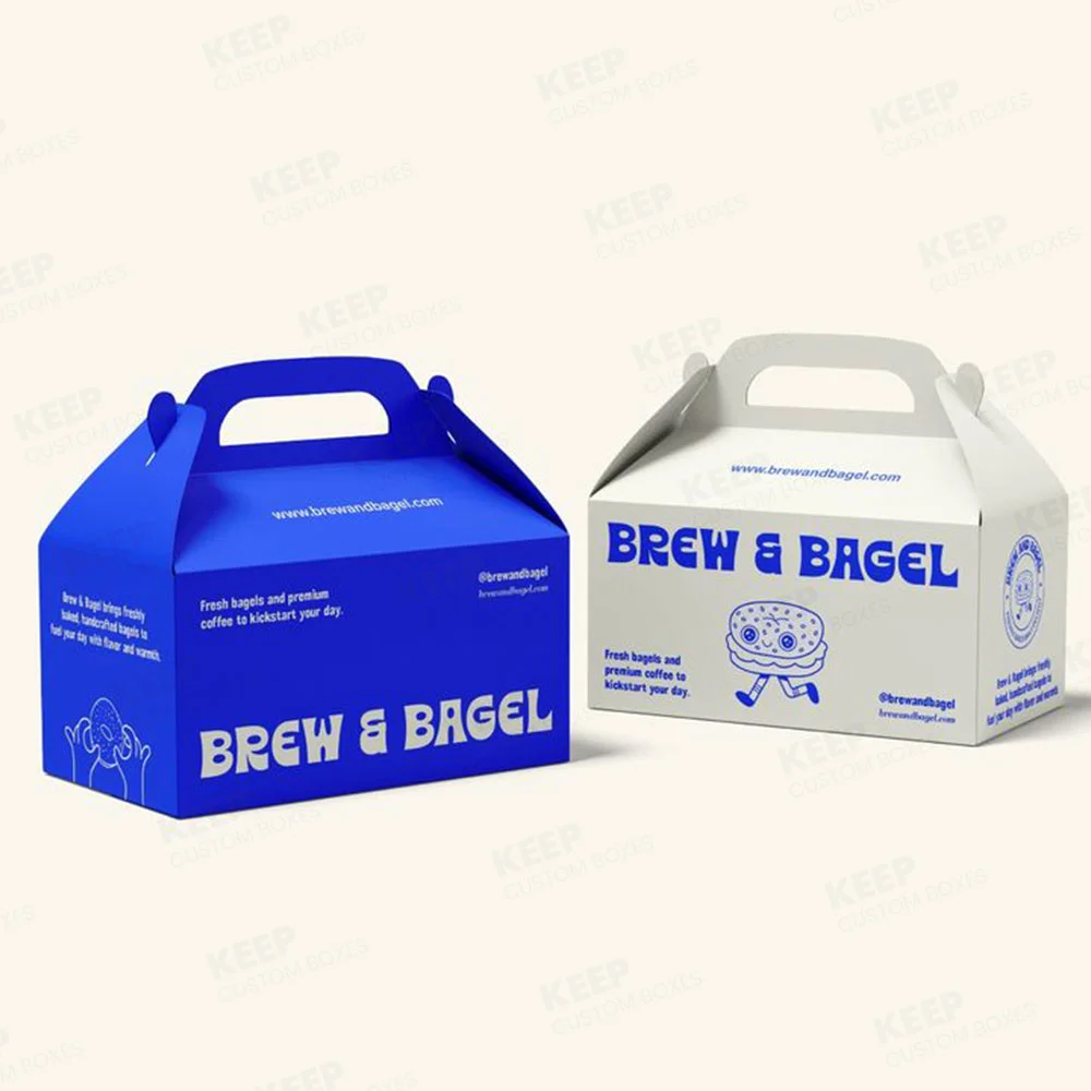 Gable boxes are the perfect blend of convenience and visual appeal, making them ideal for takeout, gifts, and retail packaging. Our custom gable boxes feature a sturdy structure with a built-in handle, making products easy to carry while showcasing your brand. Fully customizable in size, color, and design, these boxes turn every package into a memorable experience. With durable materials and high-quality printing, our gable boxes protect your products, enhance presentation, and make every delivery or gift feel special.